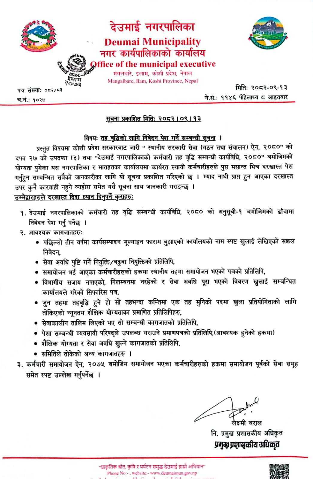 तह वृद्दिका लागि आवेदन पेश गर्ने सम्बन्धी सूचना ।
